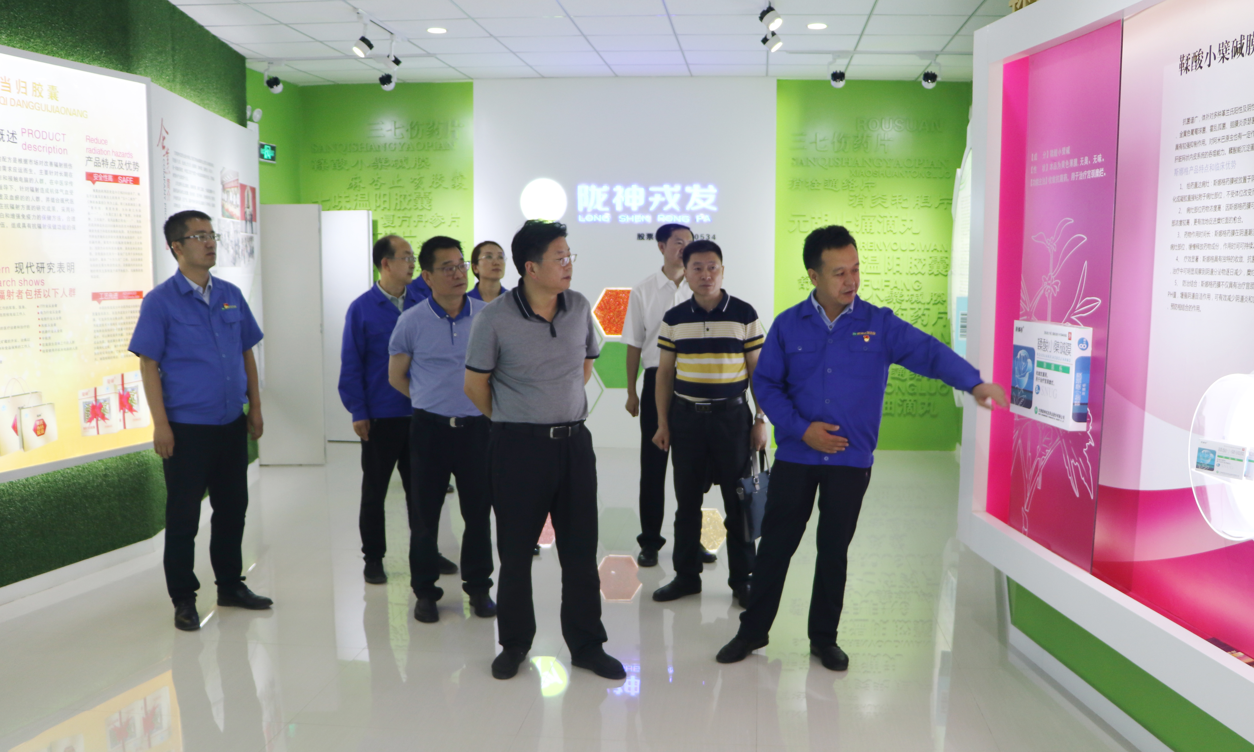 在產(chǎn)品展廳,黨委書(shū)記、總經(jīng)理康永紅介紹了公司主打產(chǎn)品元胡止痛滴丸及斯娜格藥膜、酸棗仁油滴丸、七味溫陽(yáng)膠囊等4個(gè)獨(dú)家品種和其它產(chǎn)品并結(jié)合隴神戎發(fā)“年產(chǎn)200億?,F(xiàn)代中藥生產(chǎn)線擴(kuò)能改造項(xiàng)目”規(guī)劃圖,對(duì)已建成投入使用的七大單體樓宇逐一介紹。