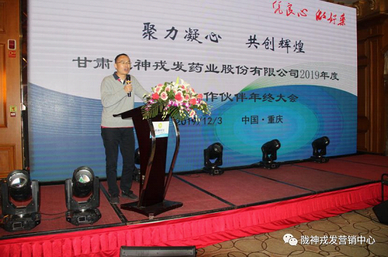 甘肅隴神戎發(fā)藥業(yè)股份有限公司副總經(jīng)理,營(yíng)銷總監(jiān)蘇海龍先生做了2019年?duì)I銷工作總結(jié)及2020年規(guī)劃。蘇總首先分析了近年國(guó)家醫(yī)藥行業(yè)政策變動(dòng)對(duì)全行業(yè)的影響,總結(jié)公司產(chǎn)品在2019年的銷售情況,并表示在2020年將繼續(xù)執(zhí)行新開發(fā)醫(yī)院獎(jiǎng)勵(lì)、學(xué)術(shù)活動(dòng)支持等銷售政策,持續(xù)打造優(yōu)秀的銷售服務(wù)能力,建設(shè)靈活多變的銷售渠道,堅(jiān)持以銷售帶動(dòng)企業(yè)的發(fā)展理念,勇于創(chuàng)新,繼續(xù)拼搏。希望在未來(lái)的道路上能夠與各位合作伙伴互相理解,互相信任,互相支持,共同發(fā)展。