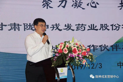 甘肅隴神戎發(fā)藥業(yè)股份有限公司董事、黨委書記、總經(jīng)理康永紅先生講話。康總經(jīng)理回顧了隴神戎發(fā)從建廠到現(xiàn)在的發(fā)展變化,從公司近年發(fā)起營(yíng)銷改革,設(shè)置大區(qū)辦事處,加強(qiáng)產(chǎn)品學(xué)術(shù)力打造等方面進(jìn)行了介紹,康總經(jīng)理表示,隴神戎發(fā)將抓住隴藥產(chǎn)業(yè)發(fā)展及甘肅中藥大品種培育的時(shí)機(jī),在甘肅藥業(yè)集團(tuán)這個(gè)更高的平臺(tái)上,增大市場(chǎng)投入力度,打造產(chǎn)品升級(jí),推進(jìn)隴藥創(chuàng)新,與各位合作伙伴攜手前行,共創(chuàng)未來(lái)!