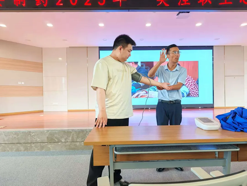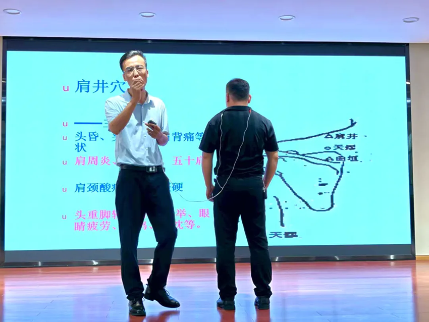 針對職場常見的肩頸酸痛等問題,演示了簡易理療手法(如頸部繞環(huán)、肩部熱敷),教育職工通過緩解身體不適改善情緒狀態(tài)。強(qiáng)調(diào)“身心同調(diào)”的減壓思路:鼓勵職工將身體鍛煉作為調(diào)節(jié)心理的方式,比如通過缺血預(yù)適應(yīng)訓(xùn)練等運動釋放負(fù)面情緒;同時在生活中保持規(guī)律作息,從健康的身體狀態(tài)中獲得安全感與滿足感,為心理健康“加分”。