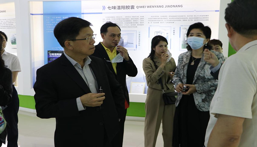 甘肅藥業(yè)投資集團有限公司黨委副書記、工會主席王賢斌,隴神戎發(fā)黨委委員、董事、副總經(jīng)理兼董事會秘書元勤輝,副總經(jīng)理、甘肅新絲路產(chǎn)業(yè)投資有限公司執(zhí)行董事兼總經(jīng)理李偉及相關(guān)人員陪同參觀考察。 參觀人員一行首先來到公司產(chǎn)品展廳及生產(chǎn)車間參觀,了解甘肅藥業(yè)集團及隴神戎發(fā)歷史沿革、發(fā)展歷程。在產(chǎn)品展廳聽取了隴神戎發(fā)四個全國獨家品種:元胡止痛滴丸,鞣酸小檗堿膜、七味溫陽膠囊、酸棗仁油滴丸以及保健食品黃芪當歸膠囊和其他普藥產(chǎn)品的介紹,對所屬企業(yè)普安制藥生產(chǎn)的宣肺止嗽合劑在對抗新冠疫情中發(fā)揮的重要作用及治療新冠病毒感染咳嗽癥狀緩解率98.27%的研究成果進行了詳細介紹,并就該產(chǎn)品進入泰國市場的條件現(xiàn)場與泰國衛(wèi)生部傳統(tǒng)和替代醫(yī)學(xué)司進行了交流探討。參觀過程中,泰國衛(wèi)生部傳統(tǒng)和替代醫(yī)學(xué)司司長一行對公司產(chǎn)品以及產(chǎn)品生產(chǎn)流程、藥理藥學(xué)、自動化設(shè)備以及中醫(yī)理論等表現(xiàn)出極大的興趣,現(xiàn)場飲用宣肺止嗽合劑,并對公司現(xiàn)代化先進生產(chǎn)設(shè)備及GMP管理給予高度評價。