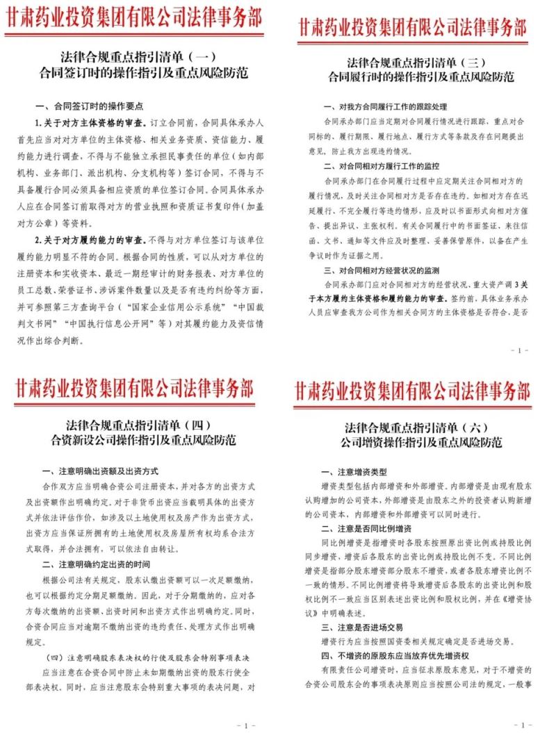 依法合規(guī)是全面落實依法治企戰(zhàn)略部署的客觀需求,也是國有企業(yè)依法推進治理體系及治理能力現(xiàn)代化的必然選擇。甘肅藥業(yè)集團始終堅持以習近平新時代中國特色社會主義思想為指導,認真貫徹落實習近平法治思想,緊緊圍繞中心發(fā)展大局,找定位、強對標,創(chuàng)新開展“6+1”行動,切實推進合規(guī)管理各項工作走深走實。