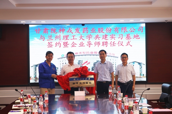 2020年7月3日上午,甘肅隴神戎發(fā)藥業(yè)股份有限公司與蘭州理工大學(xué)大學(xué)共建實習(xí)基地在隴神戎發(fā)正式揭牌設(shè)立。蘭州理工大學(xué)生命科學(xué)與工程學(xué)院院長黨委書記陳永泰、副院長任海偉,隴神戎發(fā)黨委書記、總經(jīng)理康永紅,黨委專職副書記張金德共同為實習(xí)基地揭牌。副總經(jīng)理兼董事會秘書元勤輝主持揭牌儀式。隴神戎發(fā)副總經(jīng)理、財務(wù)總監(jiān)張帆,副總經(jīng)理錢雙喜,總工程師鄧月婷,蘭州理工大學(xué)生命科學(xué)與工程學(xué)院制藥工程系主任楊林及部分老師,公司在職部分校友出席了此次儀式。