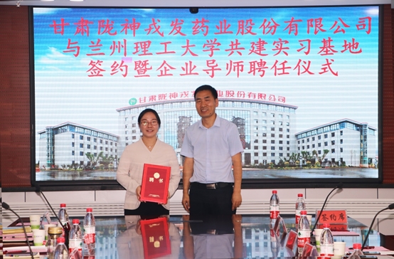 揭牌儀式之后,甘肅隴神戎發(fā)藥業(yè)股份有限公司與蘭州理工大學(xué)生命科學(xué)與工程學(xué)院實習(xí)基地現(xiàn)場簽約,蘭州理工大學(xué)生命科學(xué)與工程學(xué)院任海偉介紹了學(xué)院的情況和合作計劃,宣讀導(dǎo)師聘任文件,并頒發(fā)了企業(yè)導(dǎo)師聘書。