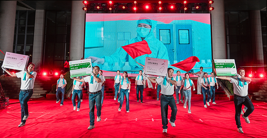 中秋逢國(guó)慶,天涯共此時(shí),9月27日,正逢雙節(jié)來臨之際,伴隨著秋高氣爽的傍晚,在甘肅藥業(yè)投資集團(tuán)、甘肅隴神戎發(fā)藥業(yè)股份有限公司榆中廠區(qū),開展了甘肅藥業(yè)集團(tuán)“永遠(yuǎn)跟黨走•唱響新時(shí)代”迎“國(guó)慶”文藝匯演活動(dòng),豐富職工精神文化生活的同時(shí),也展示了甘肅藥業(yè)投資集團(tuán)廣大干部職工濃厚的愛國(guó)愛黨積極向上的政治素養(yǎng)和高尚的紅色情懷?;顒?dòng)在一首鏗鏘有力的“國(guó)際歌”大合唱中緩緩拉開序幕。