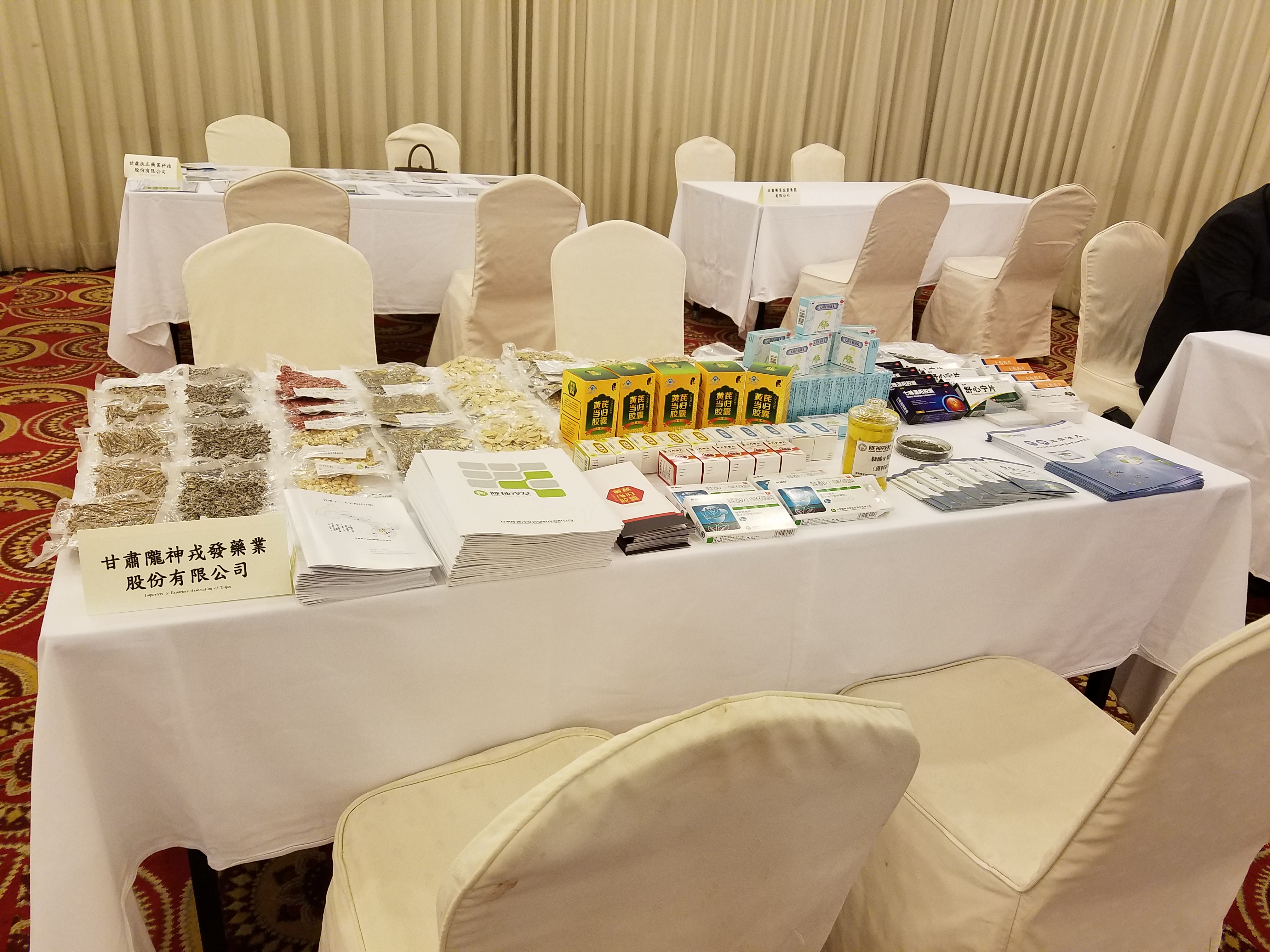 隴神戎發(fā)中藥產(chǎn)品、保健品、顆粒劑、中藥材在洽談區(qū)的展示
