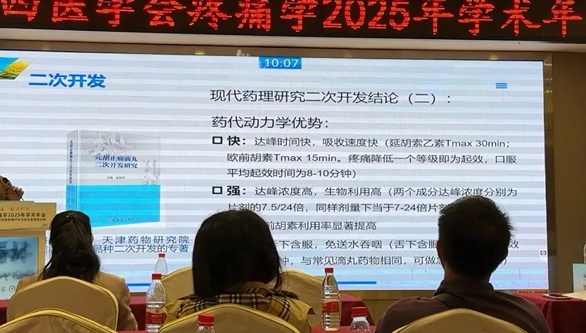 會上,疼痛專家肯定了元胡止痛滴丸在治療疼痛方面的用藥優(yōu)勢,分享了元胡止痛滴丸二次開發(fā)研究成果,研究表明元胡止痛滴丸物質(zhì)基礎(chǔ)明確、作用機(jī)理清晰,與非甾體抗炎藥相比,作用機(jī)理相似,但是靶點、位點確不同,這種多通道、多靶點的治療特點,避免了非甾體抗炎藥對胃腸道的不良反應(yīng),且滴丸劑型吸收快,日常服用方便,是慢性疼痛以及輕中度疼痛患者的理想用藥。