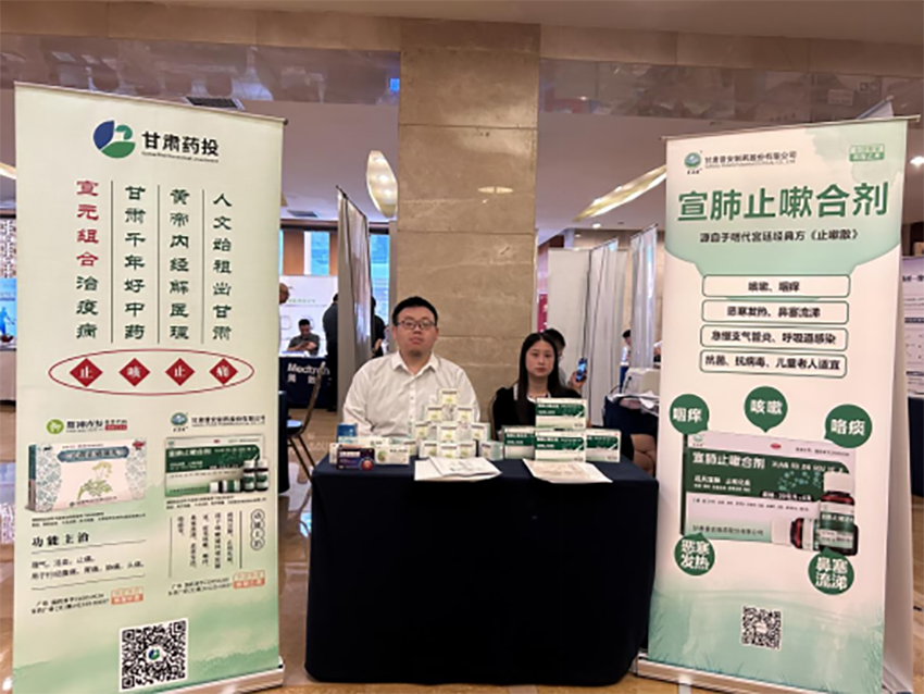 甘肅藥業(yè)投資集團有限公司攜元胡止痛滴丸、宣肺止嗽合劑、麻杏止咳膠囊、七味溫陽膠囊、斯娜格藥膜、黃芪當歸膠囊、復方丹參片等特色隴藥產品亮相此次盛會,并在會場展區(qū)設置展臺宣傳。
