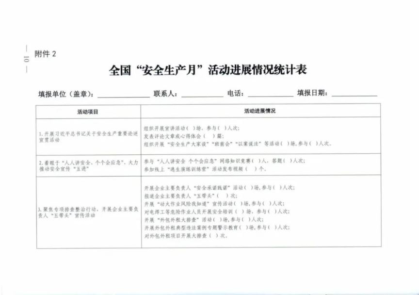 2.全國“安全生產(chǎn)月”活動進展情況統(tǒng)計表