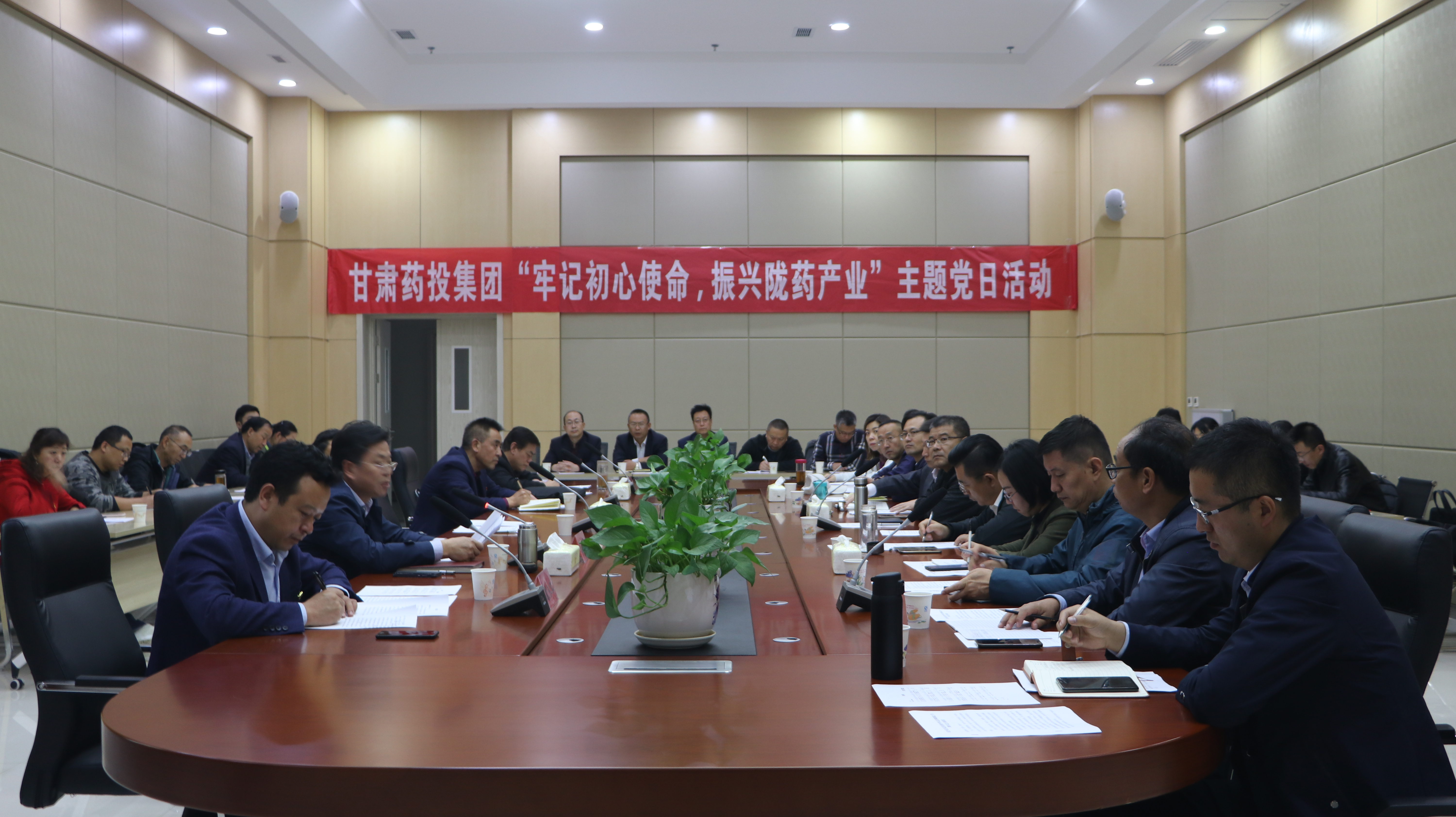 參觀結(jié)束后,隴神戎發(fā)全體人員參加了由甘肅藥投集團黨委召開的主題黨日學(xué)習(xí)交流座談會。座談會由甘肅藥投集團黨委副書記、董事王賢斌主持。會議傳達學(xué)習(xí)了習(xí)近平總書記在慶祝中華人民共和國成立70周年大會上的重要講話精神、習(xí)近平總書記在國家勛章和國家榮譽稱號頒授儀式上的重要講話精神;宣讀了《省政府國資委黨委關(guān)于表彰先進基層黨組織優(yōu)秀共產(chǎn)黨員和優(yōu)秀黨務(wù)工作者的決定》。會議中,隴神戎發(fā)黨委書記、總經(jīng)理康永紅代表隴神戎發(fā)黨委結(jié)合學(xué)習(xí)“八步沙六老漢”先進群體治沙精神、加快振興隴藥產(chǎn)業(yè)等方面進行了交流匯報。