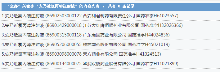 安乃近氯丙嗪注射液:6個批準文號