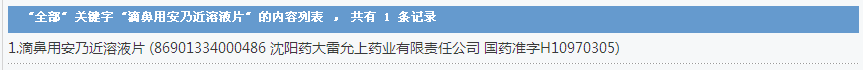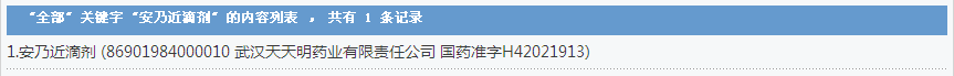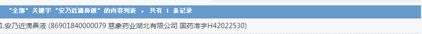 安乃近滴鼻液:1個批準文號