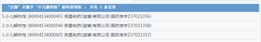 小兒解熱栓:3個批準文號