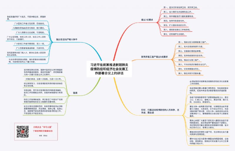 新冠肺炎疫情發(fā)生后,黨中央高度重視,迅速作出部署,全面加強對疫情防控的集中統(tǒng)一領(lǐng)導。1月7日,我主持召開中央政治局常委會會議時,就對做好疫情防控工作提出了要求。1月20日,我專門就疫情防控工作作出指示,要求各級黨委和政府及有關(guān)部門把人民群眾生命安全和身體健康放在第一位,采取切實有效措施,堅決遏制疫情蔓延勢頭。大年初一,我主持召開中央政治局常委會會議,對疫情防控工作進行再研究、再部署、再動員,決定成立中央應對疫情工作領(lǐng)導小組,派出中央指導組,要求國務院聯(lián)防聯(lián)控機制充分發(fā)揮協(xié)調(diào)作用。之后,我又先后主持召開3次中央政治局常委會會議、1次中央政治局會議,專題研究疫情防控工作和復工復產(chǎn)工作。2月10日,我到北京市調(diào)研指導疫情防控工作,視頻連線湖北和武漢抗疫前線,聽取前方中央指導組、湖北指揮部工作匯報。我還主持召開中央全面依法治國委員會、中央網(wǎng)絡安全和信息化委員會、中央全面深化改革委員會、中央外事工作委員會等會議,從不同角度對做好疫情防控工作提出要求。黨中央印發(fā)《關(guān)于加強黨的領(lǐng)導、為打贏疫情防控阻擊戰(zhàn)提供堅強政治保證的通知》。我時刻關(guān)注著疫情防控工作,每天都作出口頭指示和批示。中央應對疫情工作領(lǐng)導小組及時研究部署工作,中央指導組積極開展工作,國務院聯(lián)防聯(lián)控機制加強統(tǒng)籌協(xié)調(diào),各級黨委和政府積極作為,同時間賽跑,與病魔較量,形成了抗擊病魔的強大合力。