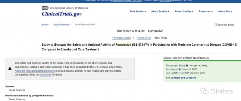 瑞德西韋是受到廣泛關(guān)注的抗病毒在研療法,它目前在6項臨床試驗中接受檢驗,治療不同類型的COVID-19患者。其中,在中國進行的兩項臨床試驗有望在4月份獲得結(jié)果。