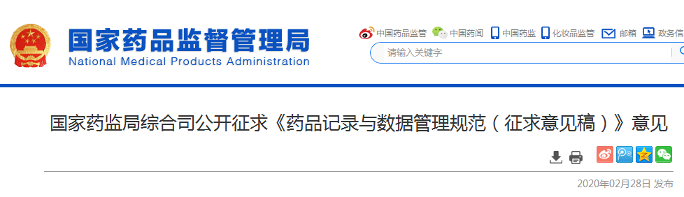 為貫徹落實(shí)《中華人民共和國(guó)藥品管理法》《中華人民共和國(guó)疫苗管理法》,進(jìn)一步規(guī)范藥品研制、生產(chǎn)、經(jīng)營(yíng)和使用活動(dòng)的記錄與數(shù)據(jù)管理,滿足當(dāng)前監(jiān)管需要,守住藥品質(zhì)量安全底線。國(guó)家藥品監(jiān)督管理局組織起草了《藥品記錄與數(shù)據(jù)管理規(guī)范(征求意見(jiàn)稿)》,現(xiàn)向社會(huì)公開征求意見(jiàn)。請(qǐng)于2020年3月15日前,將有關(guān)意見(jiàn)通過(guò)電子郵箱反饋至ypjgs@nmpa.gov.cn,郵件標(biāo)題請(qǐng)注明“藥品記錄與數(shù)據(jù)管理規(guī)范意見(jiàn)反饋”。